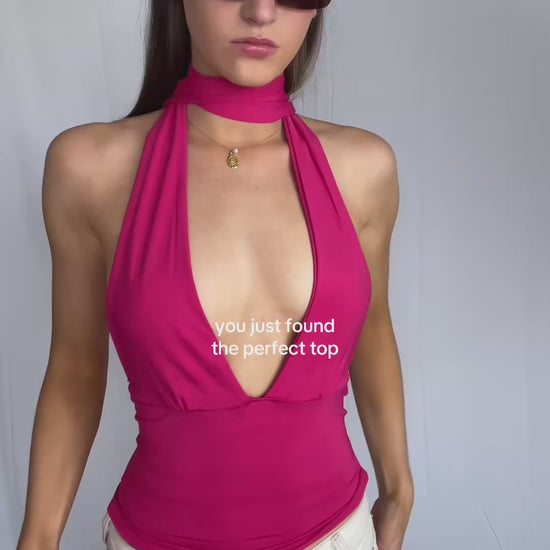 Evelyn Halter Tie Top Red